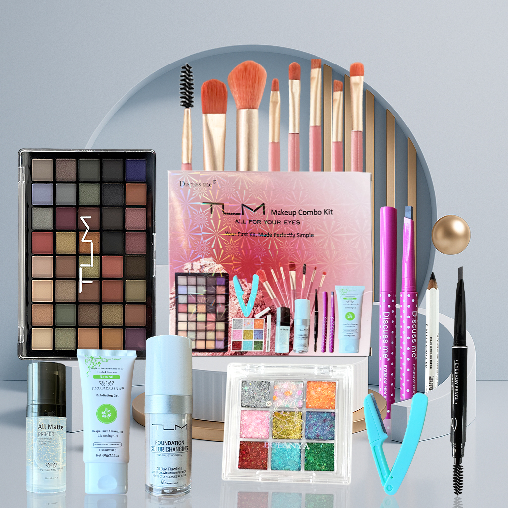 The TLM makeup set includes 18 items such as eyeshadow palette, foundation liquid, exfoliating gel, essence liquid, eyebrow pencil, eyebrow shaping knife, etc., to create a stunning look.